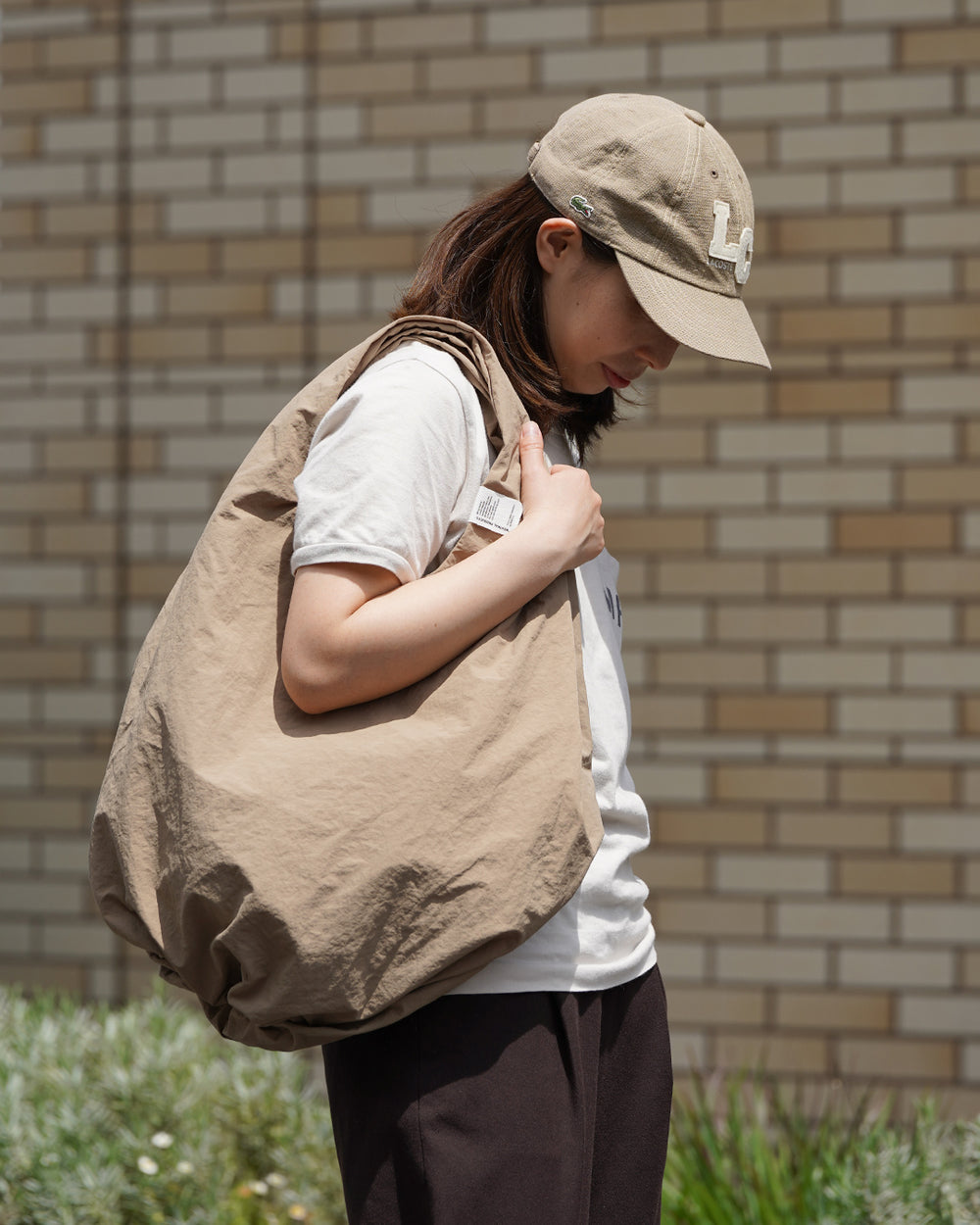 とても軽く、シワが目立ちにくい素材のため旅行時のサブバッグとしても◎。ビッグサイズでありながらハンドル持ちも可能な絶妙サイズです。