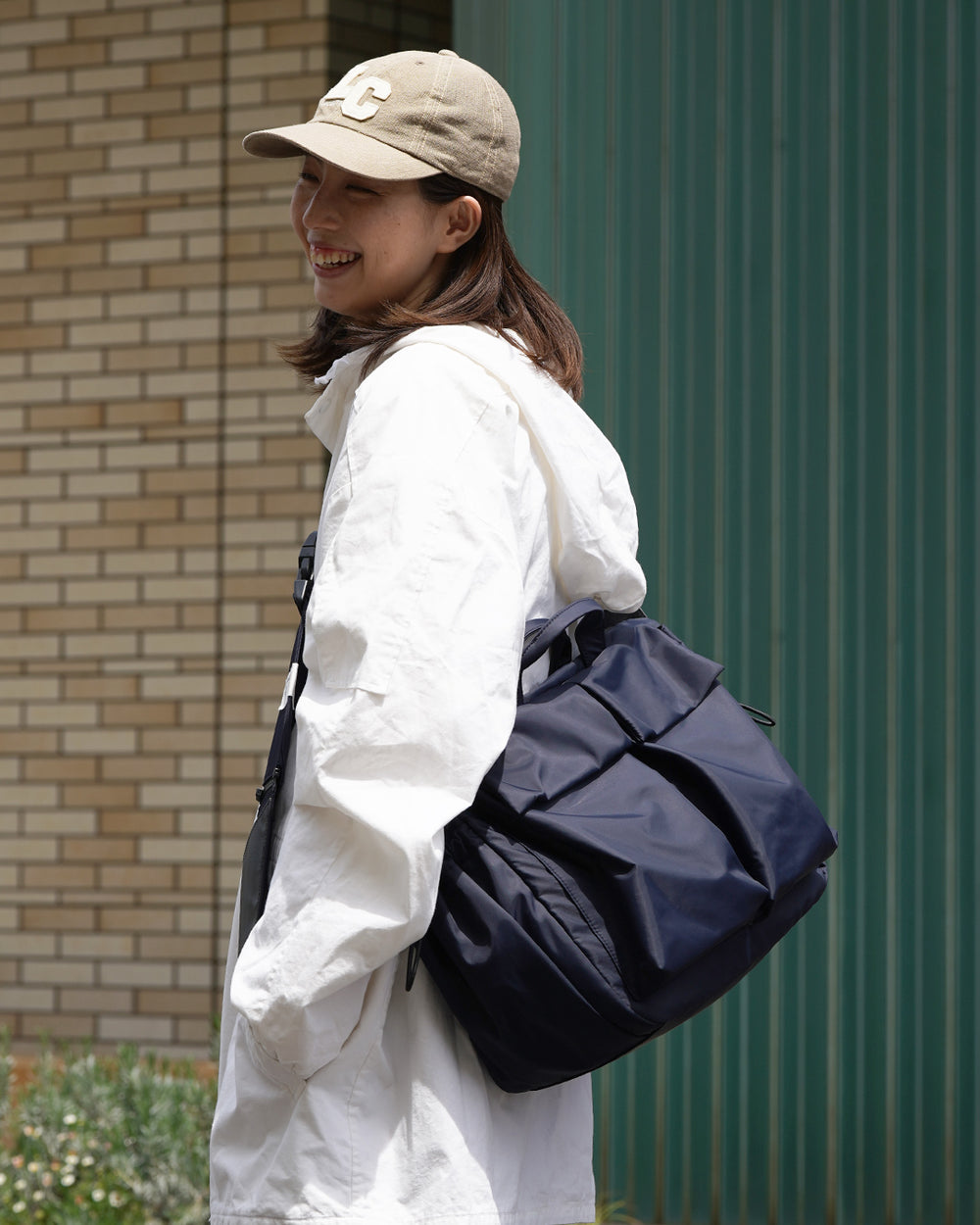 マチがあるため、大容量の収納が可能。ハンドル持ち、肩掛けの2WAYスタイルでお使いいただけます。素材は、撥水性の高いナイロン生地で雨風の強い日でも安心。