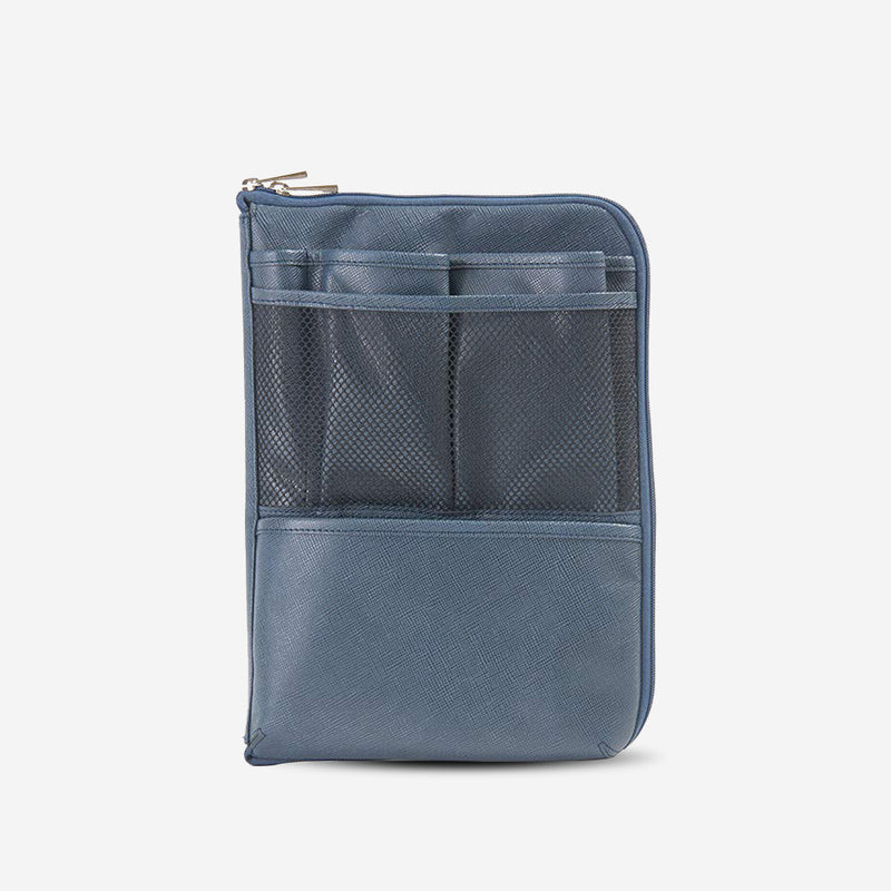 縦型のため、ビジネスリュック愛用者にピッタリ!仕事道具をきれいに整理整頓でき、ペン差し、小物ポケット、メッシュポケットと異なる収納機能が充実。メイン収納には13インチのノートパソコンやA4サイズの書類が収納できる。またダブルファスナーの為、コの字に開き物の出し入れが非常にスムーズ!同素材で作られたリュック(GA608)と一緒に使うとリュックの中が整頓でき大変便利。いつでも、どこでも整理整頓ができる縦型バッグインバッグです。