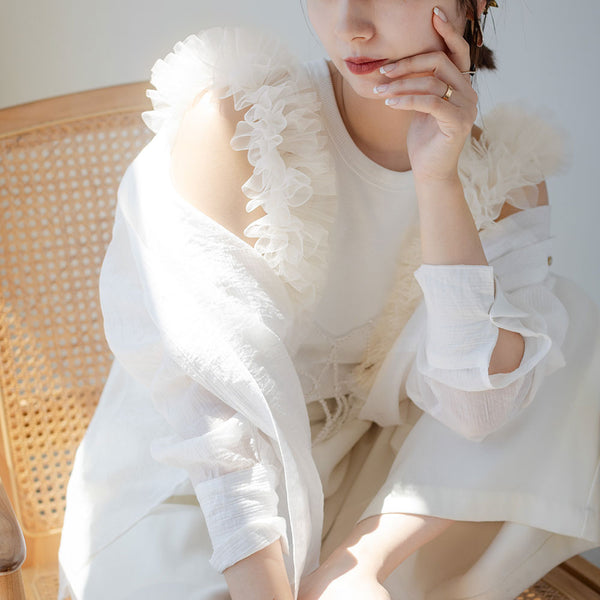 甘めガーリーから大人上品なコーデまで幅広いスタイリングが楽しめるトップスです。