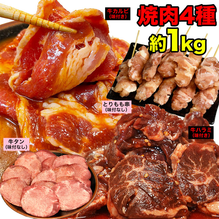 4つの味わい焼肉セット 牛カルビ 牛ハラミ 牛タン 鶏串(鳥串 焼き鳥用) バーベキュー BBQ キャンプ 海水浴【2個以上から注文数に応じオマケ付き】 4,680円(税込) 4876 送料無料