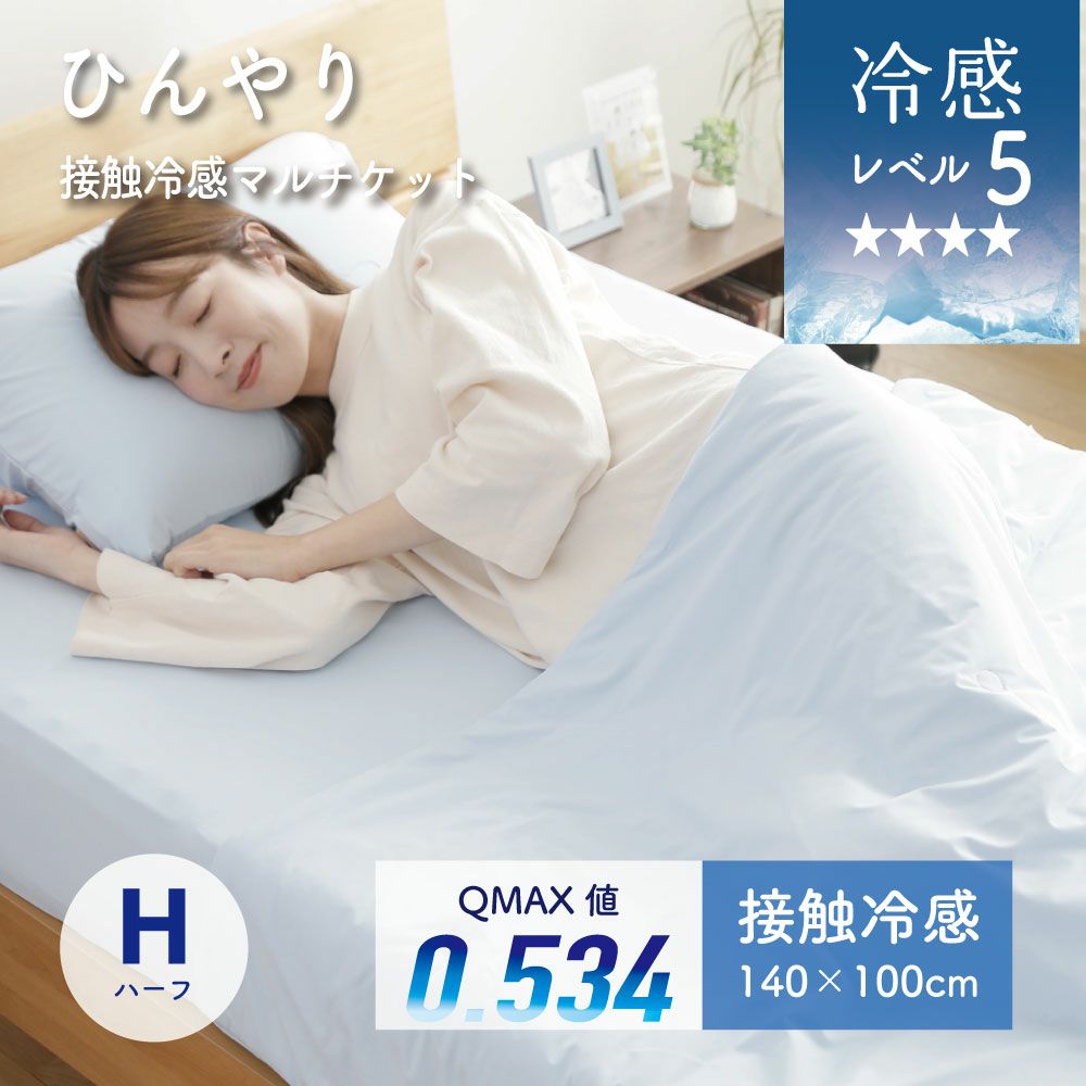 ひんやり接触冷感 Q-max値:0.534 接触冷感マルチケット ハーフ 140×100cm 定価 ¥ 7,700 のところ ¥ 5,390