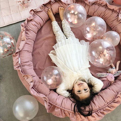 素材には国産のヒノキを採用し、すべらかな手触りと程よい硬さが特徴です。天然ヒノキならではの、ほのかな香りも楽しめ、ベビーの五感を刺激します。