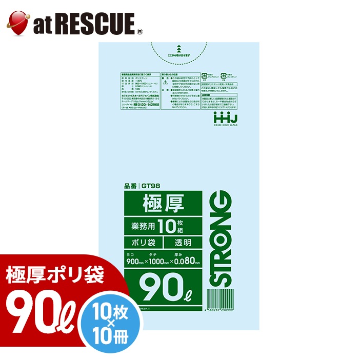 ≪極厚業務用ポリ袋 90リットル【GT98】0.080ミリ厚(透明)10枚入×10冊入≫