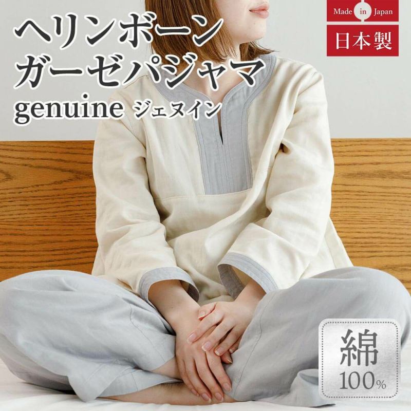 【Lサイズ】genuine(ジェヌイン)ヘリンボーンガーゼパジャマ(ルームウエア) ¥ 15,800 税込