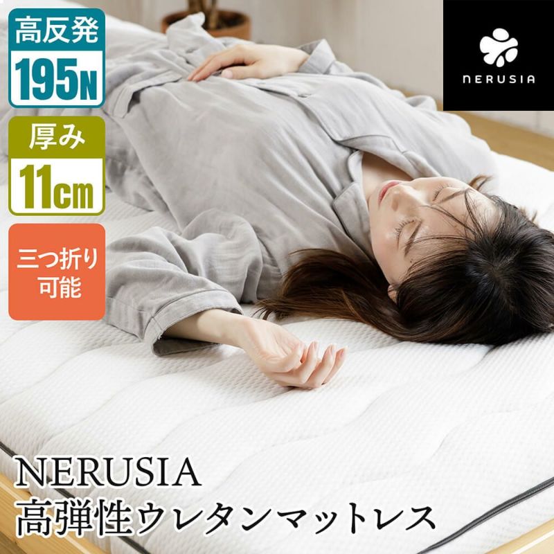 床面の高さを2段階に調整できる、すっきりとしたデザインのベッドフレームです。ヘッドボード上部には本などを差し込めるスペースがあり、棚部分には2口コンセントが付いています。表面は塩ビ素材ですので、キズや汚れに強いのもポイントです。