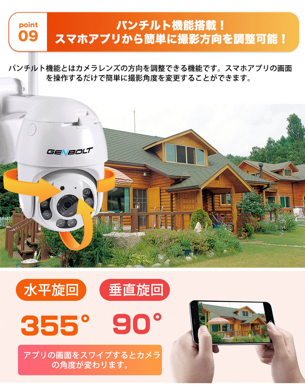 パンチルト機能防犯カメラ/ 防犯カメラ 2/4/500万画素 パンチルト対応 AI検知機能付き C-GB213