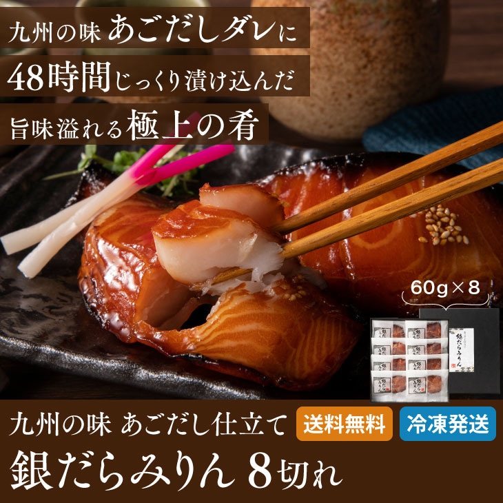 長崎県産の焼きあごと熟成した黒みりんの旨味が凝縮した、銀だらみりんの8食セット。